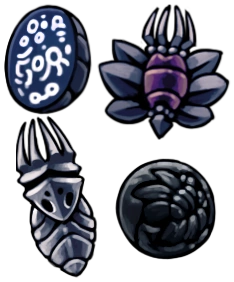 Předměty po bývalých obyvatelích Hallownestu... nebo po těch mnohem starších. Lze prodat Relic Seeker Lemm za Geo. |